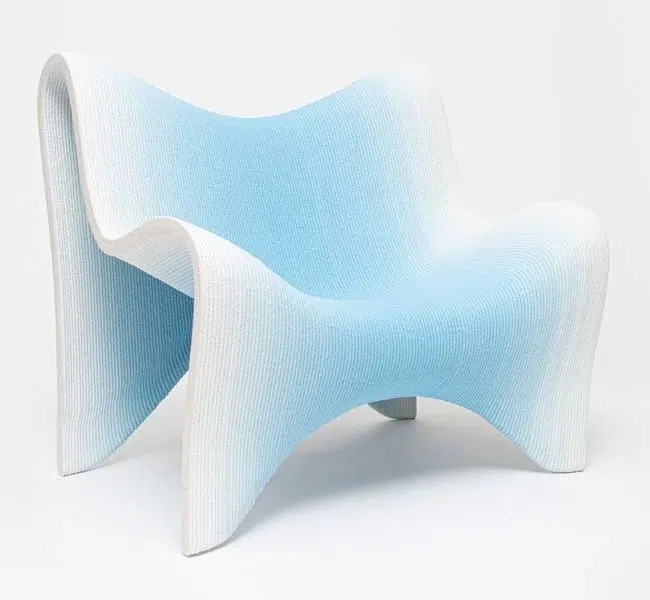 First, a polystyrene foam model was shaped by hand. After that it was encapsulated with resin and glass fibres. Finally, a stone carpet was used to cover the entire surface of the chair. This lightweight construction saves weight and material, even though the chair appears to be very heavy and solid.